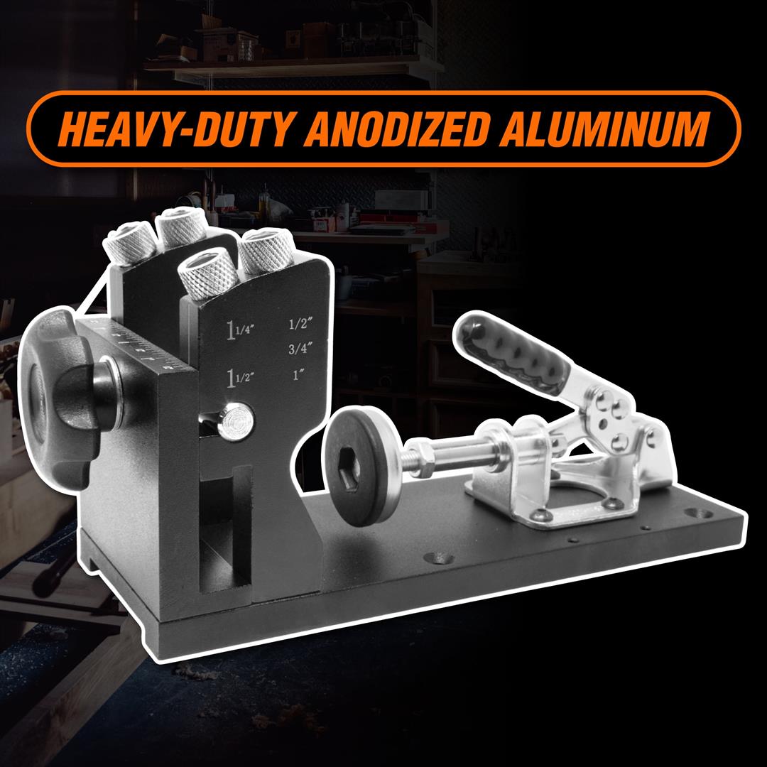 Remember when you could create perfect pocket joints? Hit all the right angles with the WEN Pocket Hole Jig. This portable jig creates uniform pocket holes in workpieces of all sizes, including standard 2x4s. Hardened steel drill guides help ensure accurate drilling while the fixed toggle clamp easily adjusts to secure your boards in place. The jig is made out of heavy-duty anodized aluminum, with mounting holes for attachment to any bench top or work surface. Variable drilling angles allow the jig to accept a wide range of material thicknesses. This set also includes a portable L-base for drilling pocket holes in tight spaces, mounting hardware for bench top installation, a 3/8-inch step drill bit with depth stop collar, 24 pocket hole plugs, and 100 self-tapping screws (25 in each of the following sizes: 1 inch, 1-1/4 inch, 1-1/2 inch, and 2 inches). And because its a WEN product, your pocket hole jig comes backed by a two-year warranty, a friendly customer service phone line, and a stocked inventory of replacement parts, all to make sure you remember WEN.