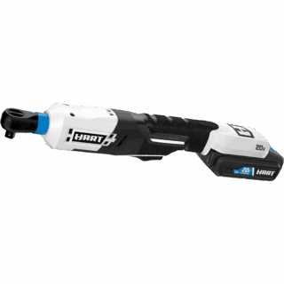 $79.31Add to cartInstead of swinging a manual ratchet, let HARTs 20V 3/8 Ratchet do the work for you. This ratchet cranks out up to 35 ft./lbs. of torque at up to 230 RPM, making tightening and loosening bolts and nuts a breeze. You never need to worry about this ratchet handles swing clearance, plus it includes a 2-finger variable speed trigger for better control. And when working on the inside of a car engine, the built-in work light helps you see what youre doing. Whats more, this tool is cordless, which means you can move around freely without tripping over an air hose. The 3/8 anvil allows the tool to work with different sockets and attachments to suit a wide range of applications. This 3/8″ Ratchet is a tool only deal, but it is still compatible with the HART 20V Lithium-Ion Battery!