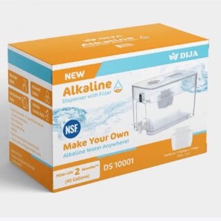 $48.98Add to cartDIJA DS10001 alkaline dispenser with filter and white auto-fill lid makes it easy to refill and pour water. DIJA alkaline dispenser with filter has a 30-cup capacity 17 cups of filtered water and 13 cups in the holding tray. The filter life is 2 months with 40 gals. Turn your tap water into fresh alkaline water and remove tap water contaminants. Ionized water is an excellent and convenient way to add alkaline minerals to your diet. Mineral-rich alkaline water purifiers nourish, and hydrate our body, delivering value, goodness, and sensibility. These essential minerals absorb well into our bodies and the health benefits are endless. The filter reduces chlorine taste and odor. Once the water is done filtering, pour yourself a fresh glass of alkaline filtered water. 118oz / 2.5L.